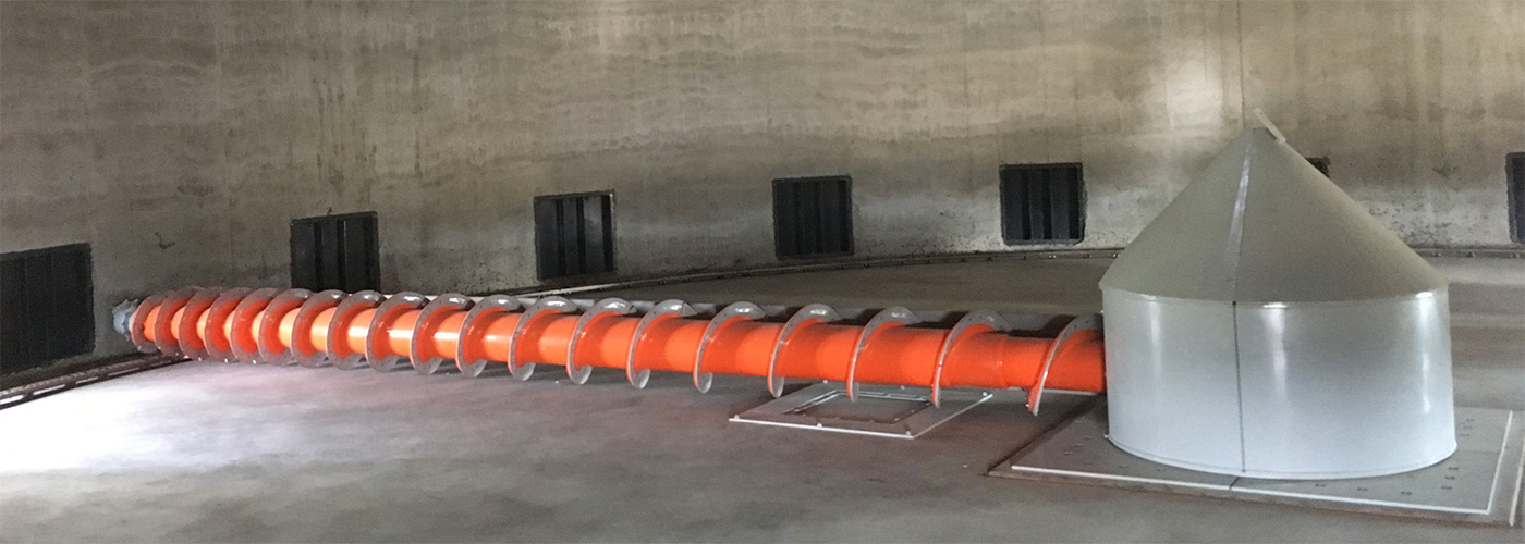 公轉(zhuǎn)行走系統(tǒng)通過(guò)特殊的軌道自清裝置結(jié)合鏈輪組件來(lái)實(shí)現(xiàn),為出倉(cāng)絞龍切入物料提供動(dòng)力